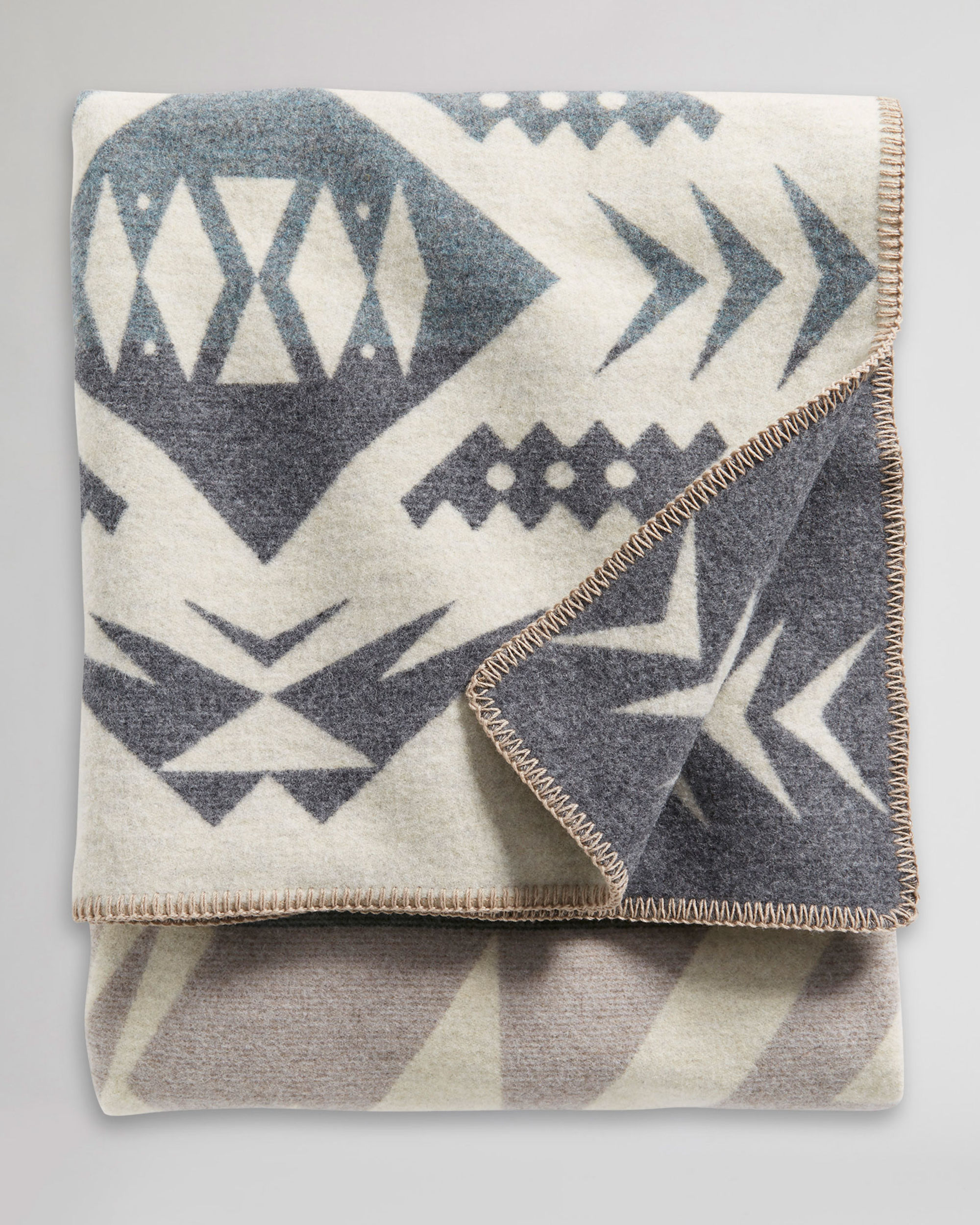 Patterned after the coveted agates found by lucky beachcombers along a stretch of the Central Oregon Coast— half day’s drive from Pendleton, where this wool blanket is made. In this design, striated stones tumble from the ocean onto a sandy shore, waiting for discovery by those with a discerning eye. Reverses for two distinct looks.