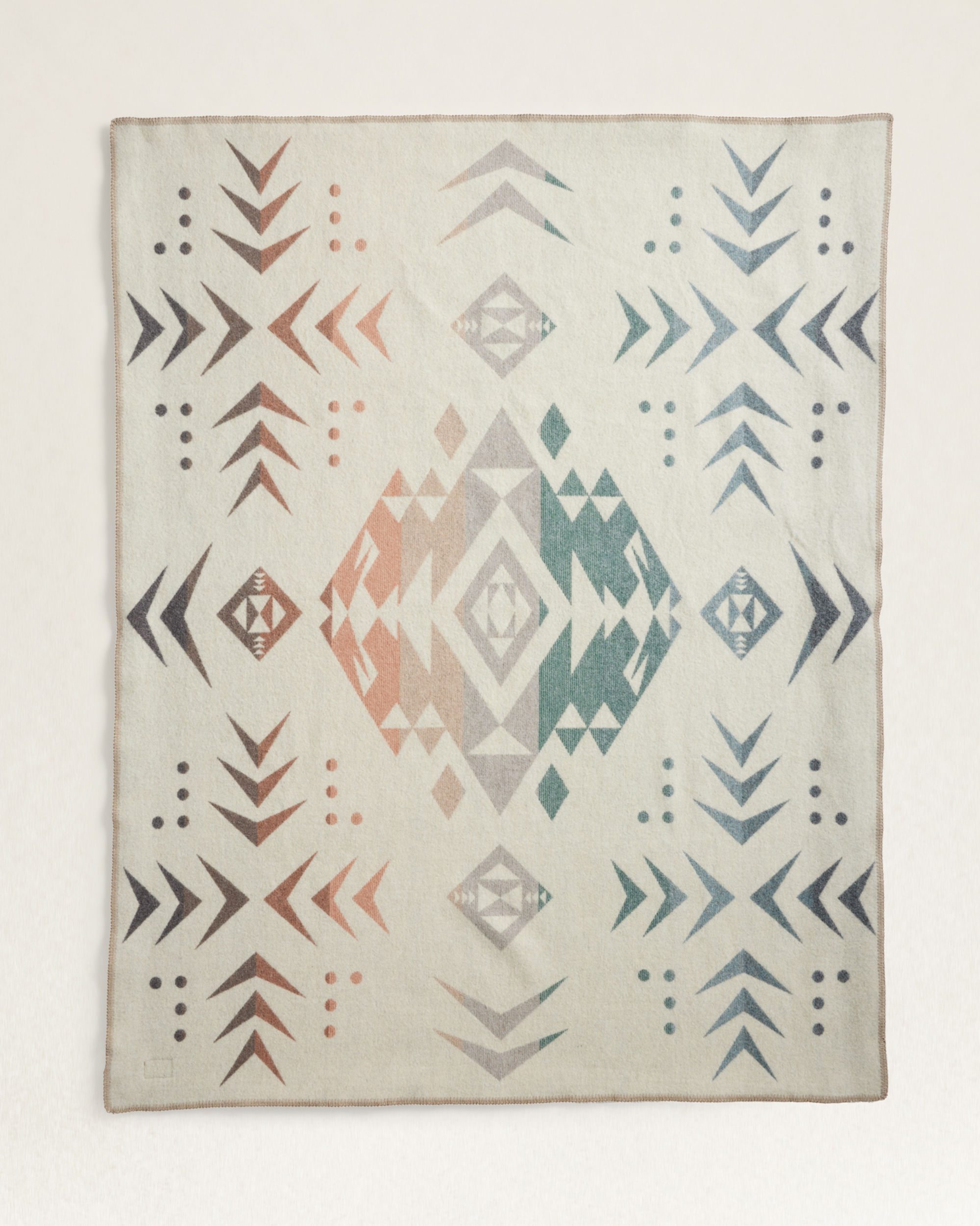 Patterned after the coveted agates found by lucky beachcombers along a stretch of the Central Oregon Coast—a half day��s drive from Pendleton, where this wool blanket is made. In this design, striated stones tumble from the ocean onto a sandy shore, waiting for discovery by those with a discerning eye. Reverses for two distinct looks.