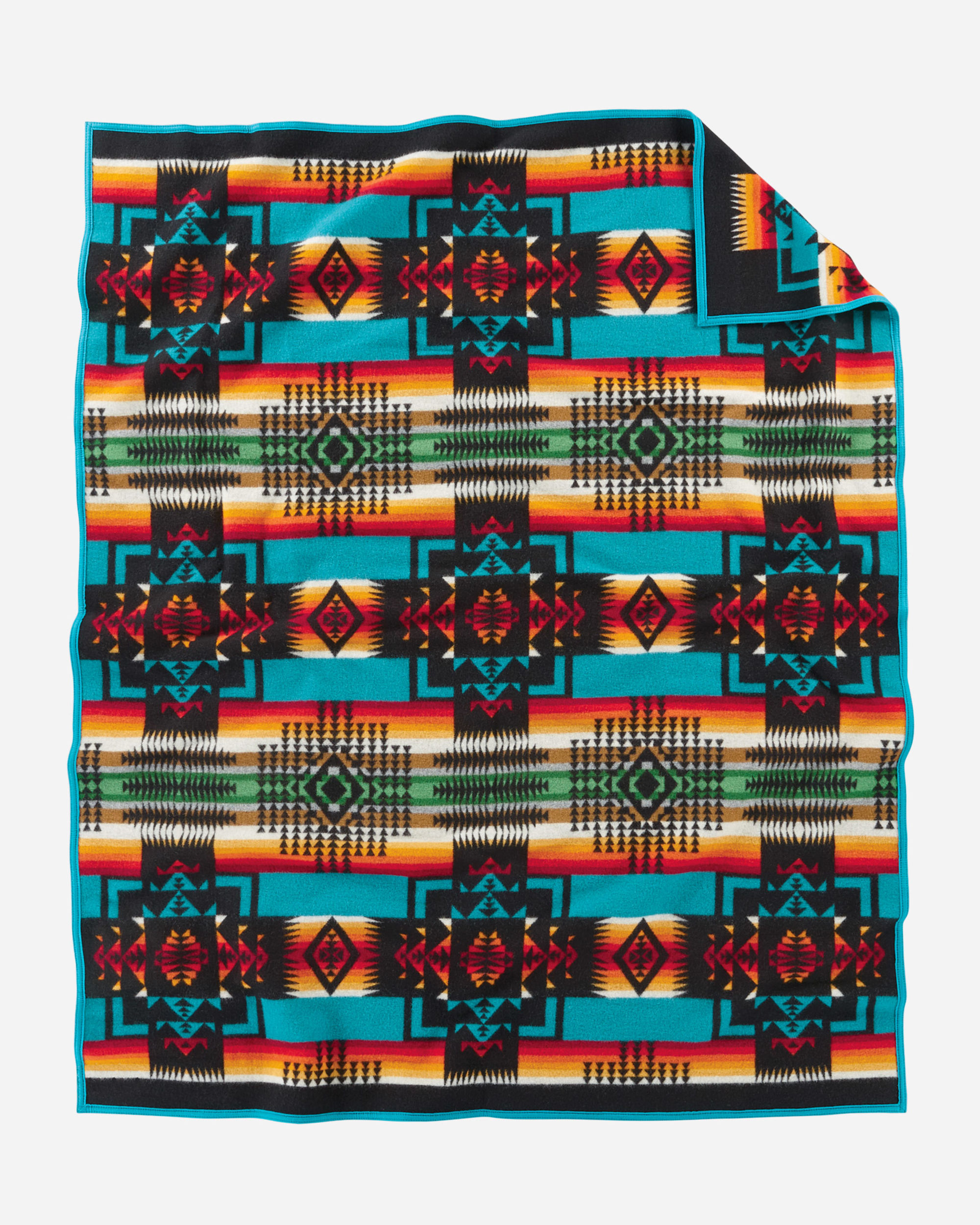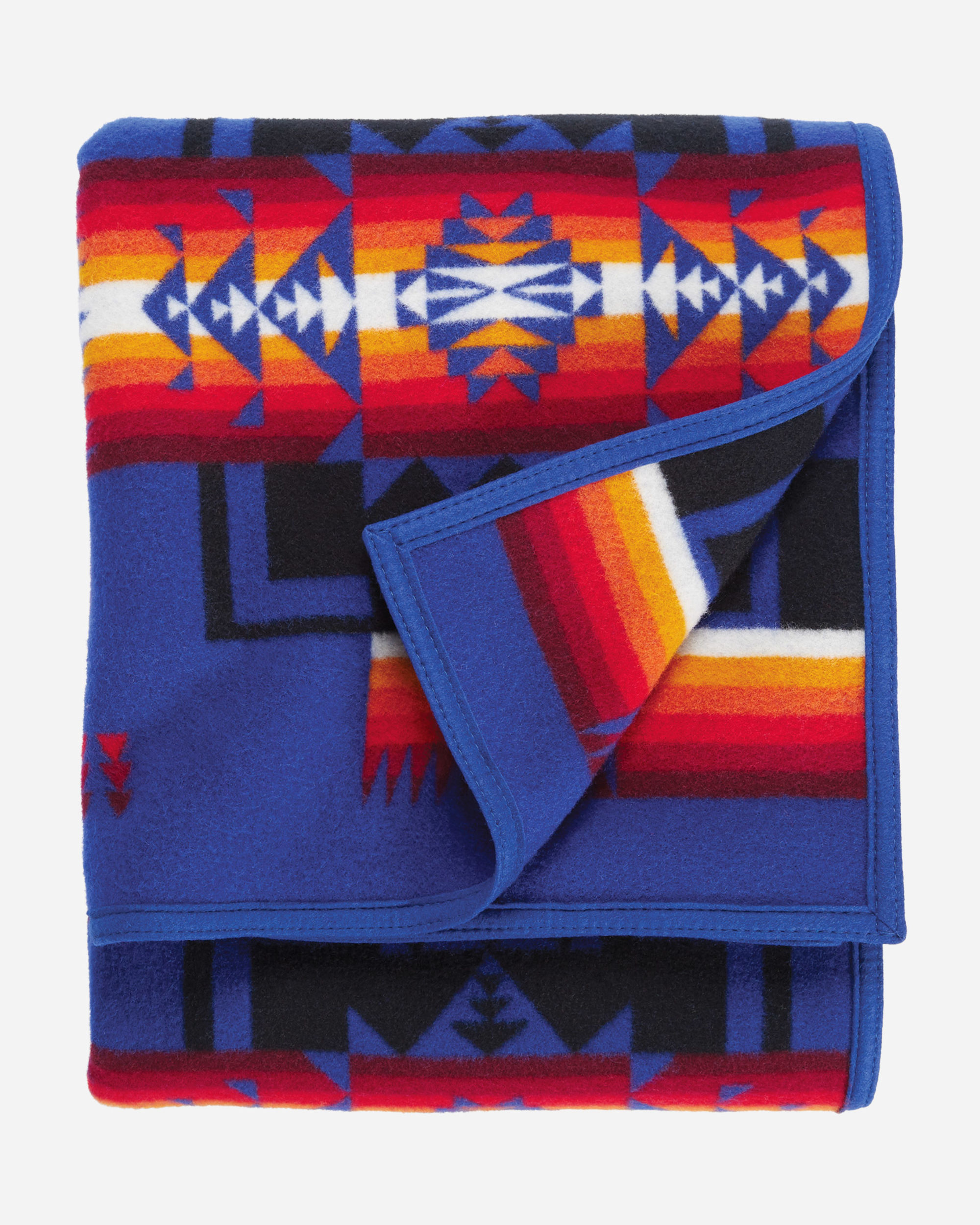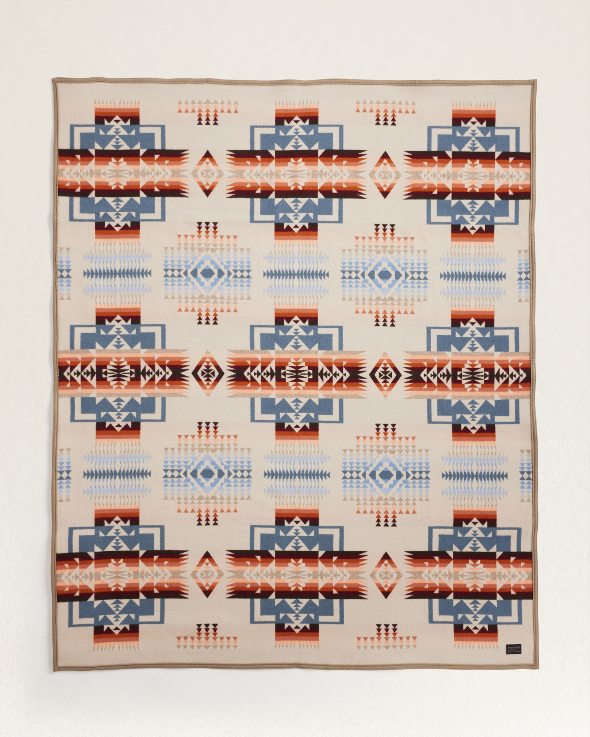 First woven in the 1920s, this USA-made wool blanket has been one of our most popular designs ever since. Chief Joseph led the Nez Perce tribe native to northeastern Oregon in the late 1800s. Widely admired for protecting his people and speaking the truth, he is honored with this design, symbolizing bravery. Bold arrowheads represent the chief's courage, strength and integrity. Reverses for two different looks.