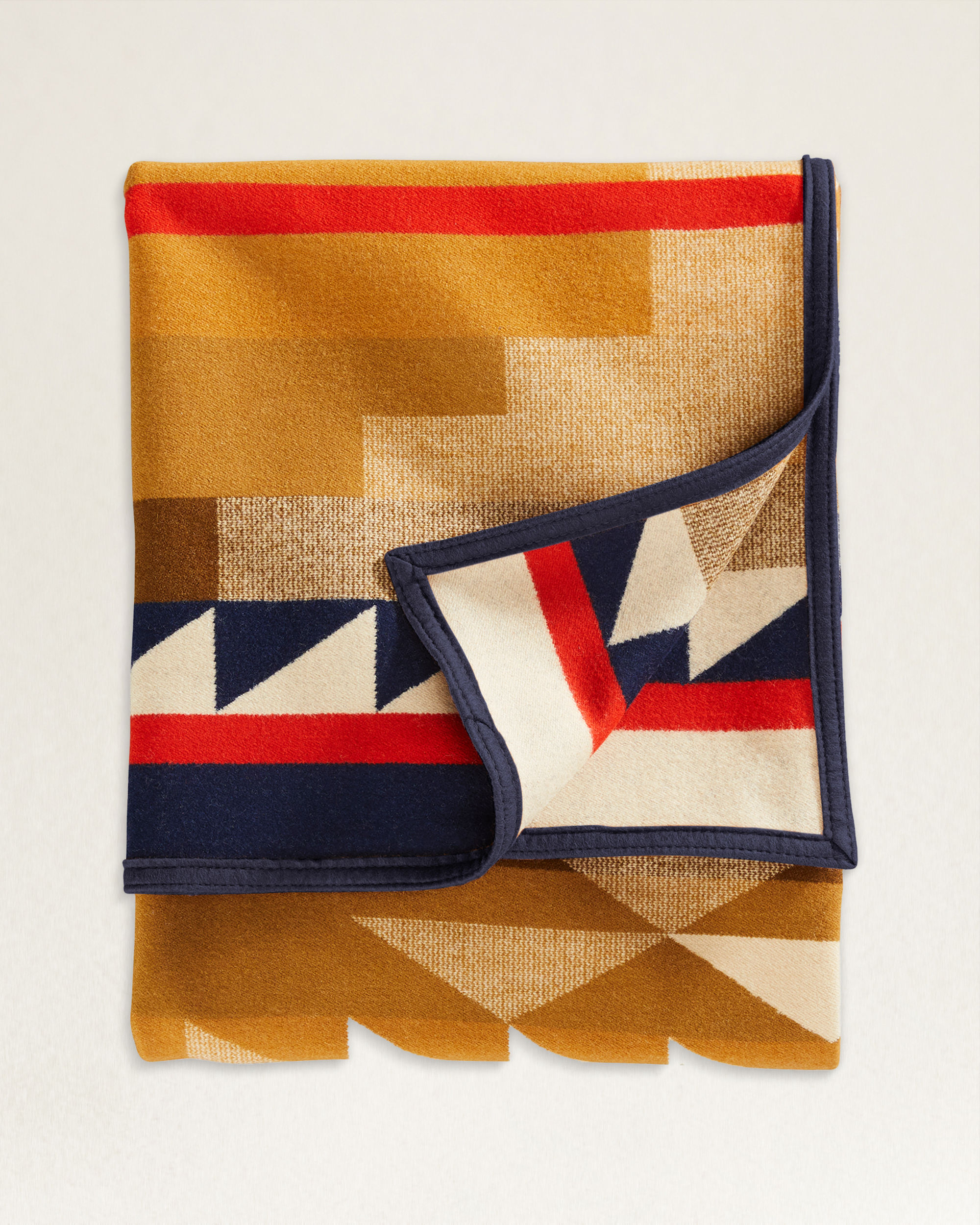 Native American tribes traveled to Wyoming��s Medicine Bow Mountains to harvest wood for especially fine bows. In this design, stands of wood alternate with arrows that meet in the center to evoke the Medicine Bow River, an important crossing point through the Continental Divide. Expertly loomed, dyed and woven of pure virgin wool in our Pendleton, Oregon, mill, in a double-sided design for two different looks.