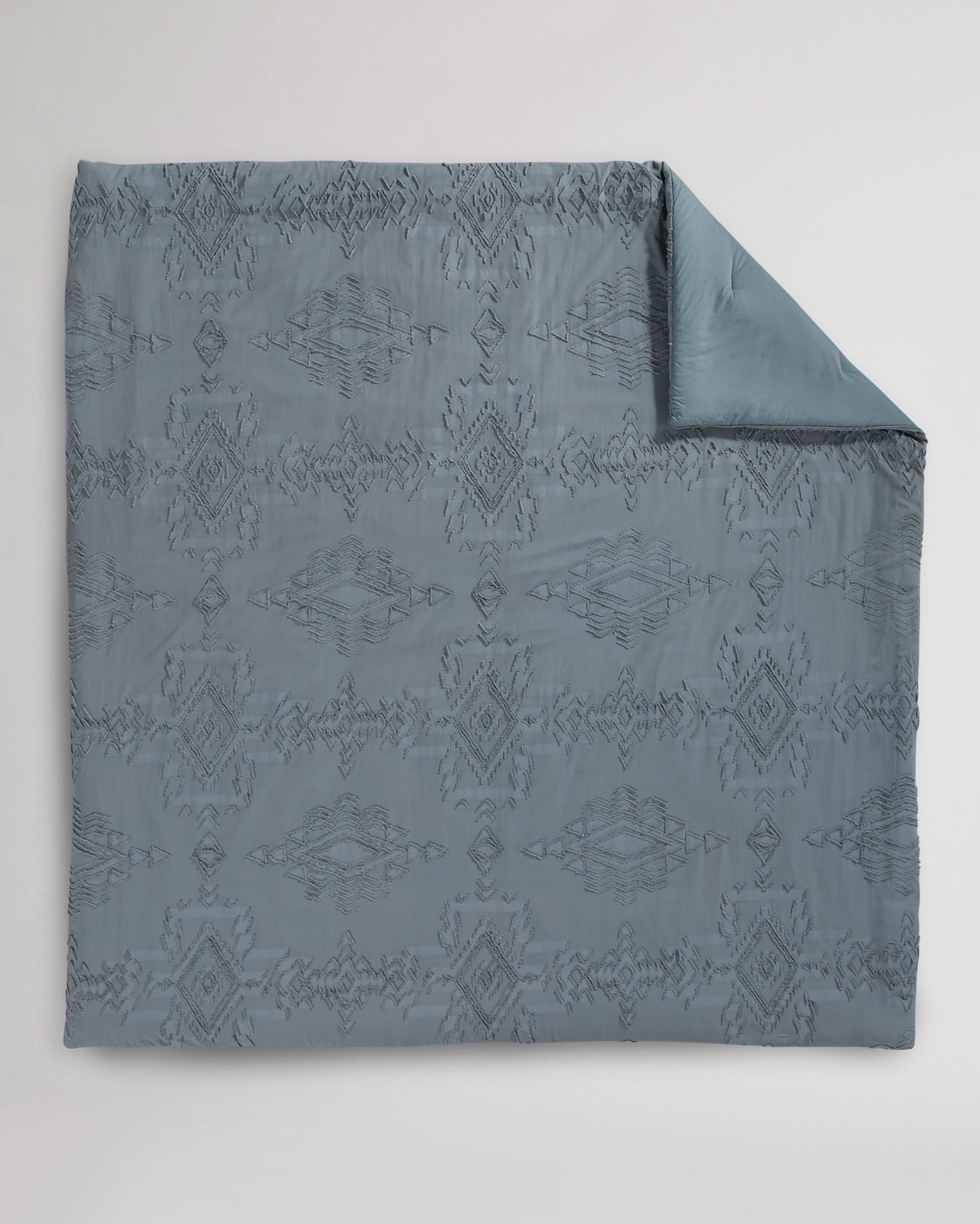 Our Rock Point comforter set features a tonal and softly textured pattern based on the rugged natural rock formations that surround Rock Point, Arizona. Made from soft 100% cotton for naturally breathable, year-round comfort. Twin has one standard sham; Full/Queen has two. King has two king shams. Solid reverse.