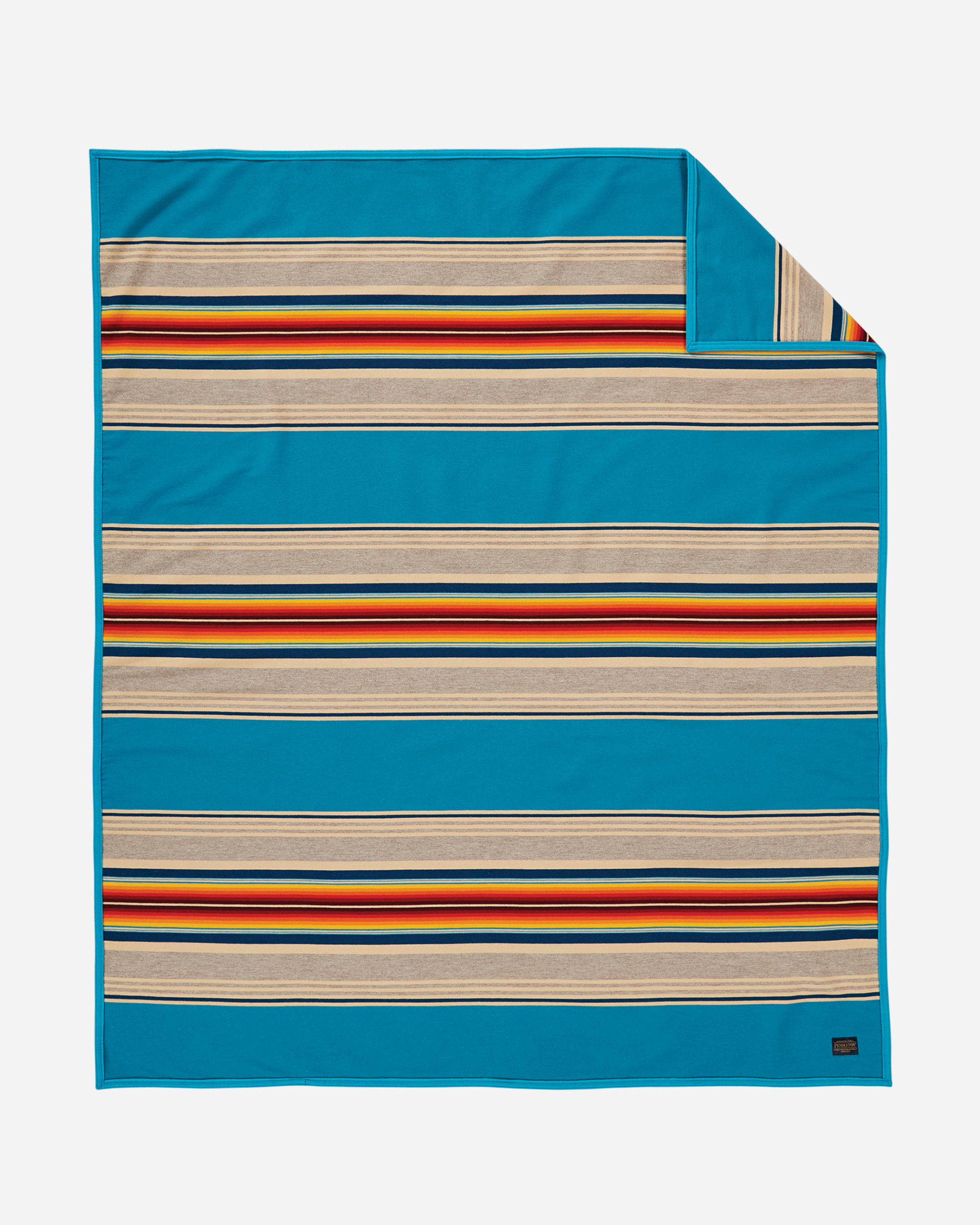 In expert hands, wool takes dye like no other fiber, creating permanently rich color you'll admire for years. These energetic, vibrant stripes are inspired by the celebrated serape patterns of Saltillo, Mexico, and woven in our Pacific Northwest mills. A lighter weight makes these blankets just right for late summer and early fall.