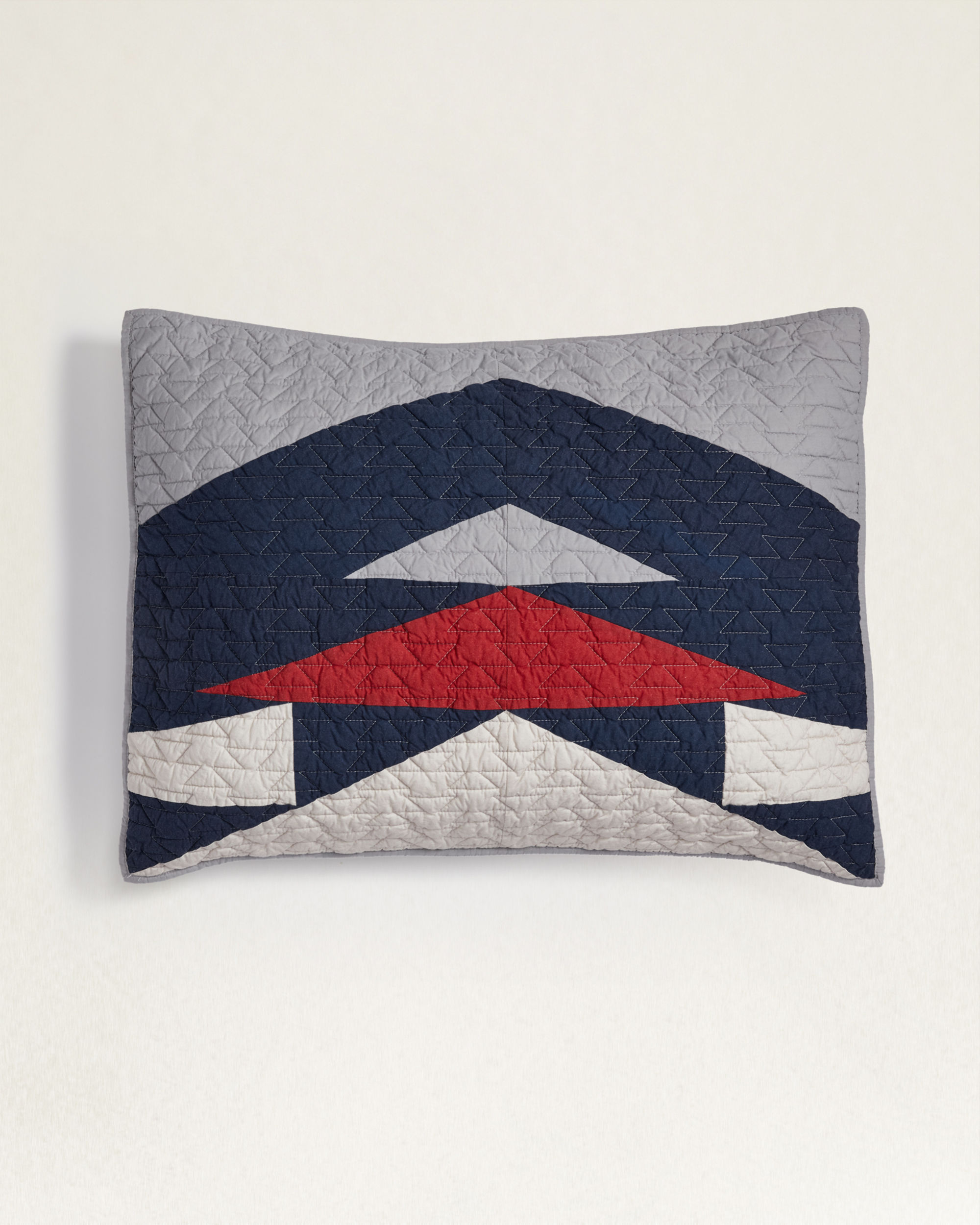 A lightly filled cotton quilt set in a pieced design featuring our Tecopa Hills pattern on front, with a solid reverse. Colorfast and machine washable, it's a soft, breathable choice any time of year. Twin has one standard sham; Full/Queen has two. King has two king shams.