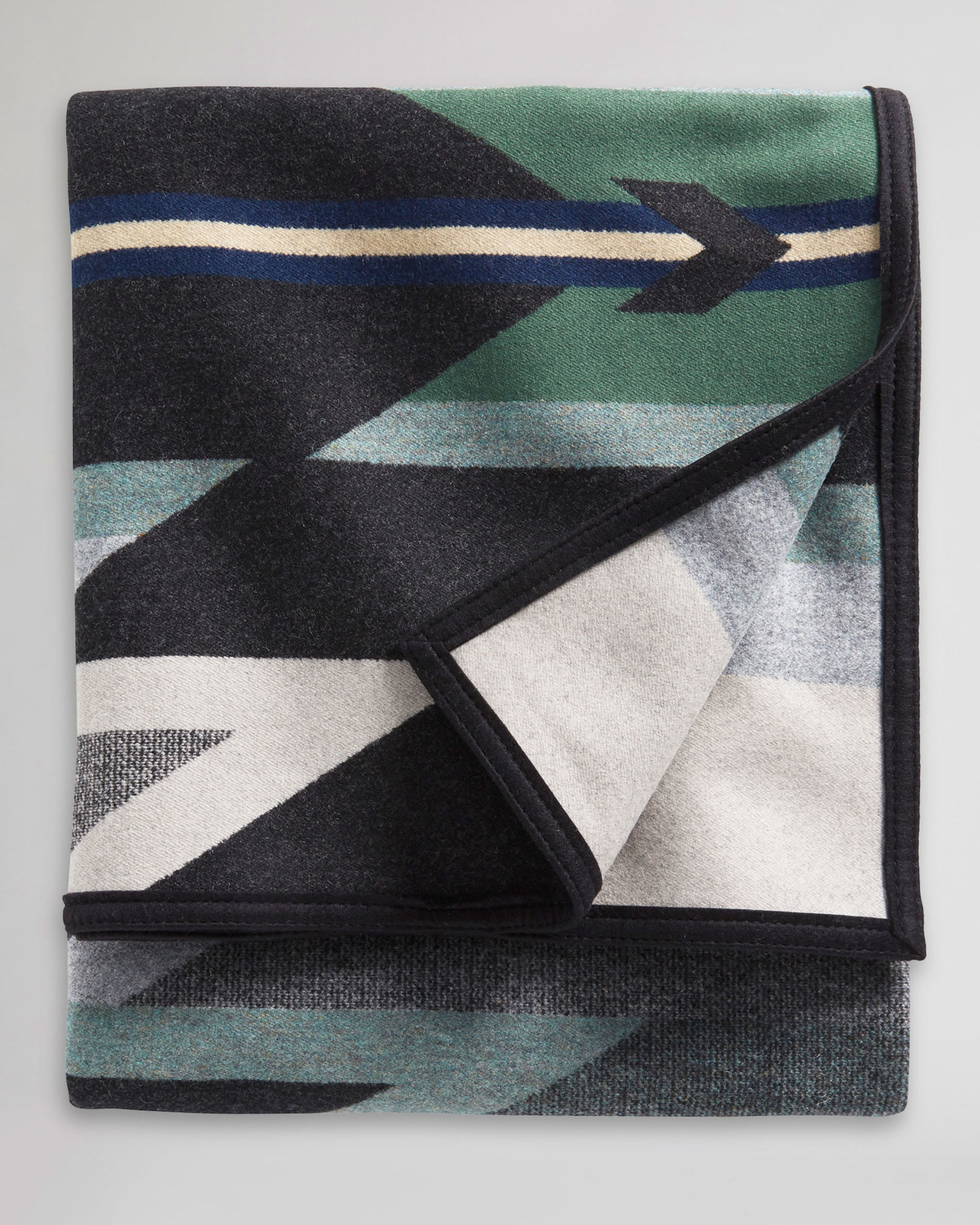 This USA-made blanket features a balanced pattern inspired by the distinctive peaks, fertile valleys and pristine rivers along Oregon’s Wyeth Trail spanning 2,170 miles. Reverses for two dramatically different looks. Pair with matching sham (item 74144).