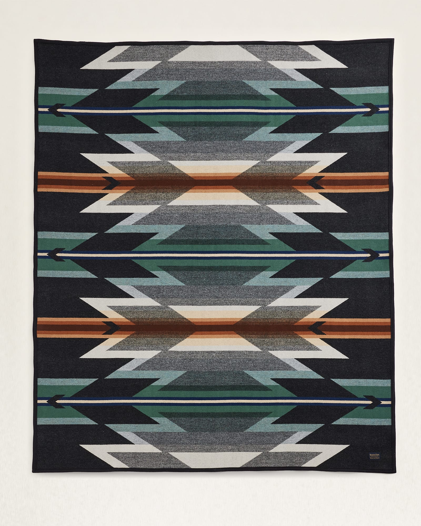This USA-made blanket features a balanced pattern inspired by the distinctive peaks, fertile valleys and pristine rivers along Oregon’s Wyeth Trail spanning 2,170 miles. Reverses for two dramatically different looks. Pair with matching sham (item 74144).