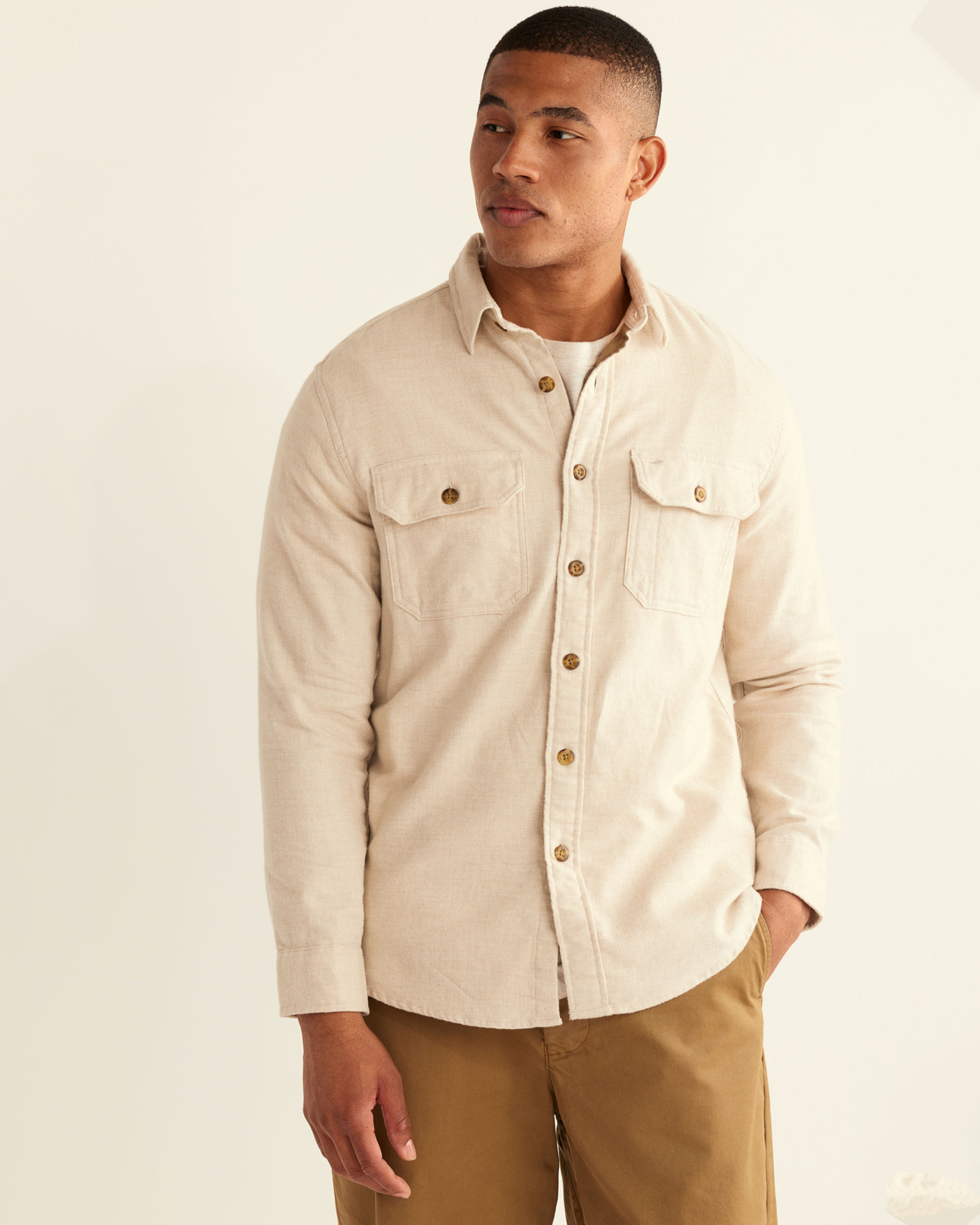 Named after Portland's hardworking, historic street, this men's cotton shirt is a rugged, dependable flannel that's brushed on both sides for extra softness. Two button-through chest pockets with a pen slot, twill tape placket, locker loop.