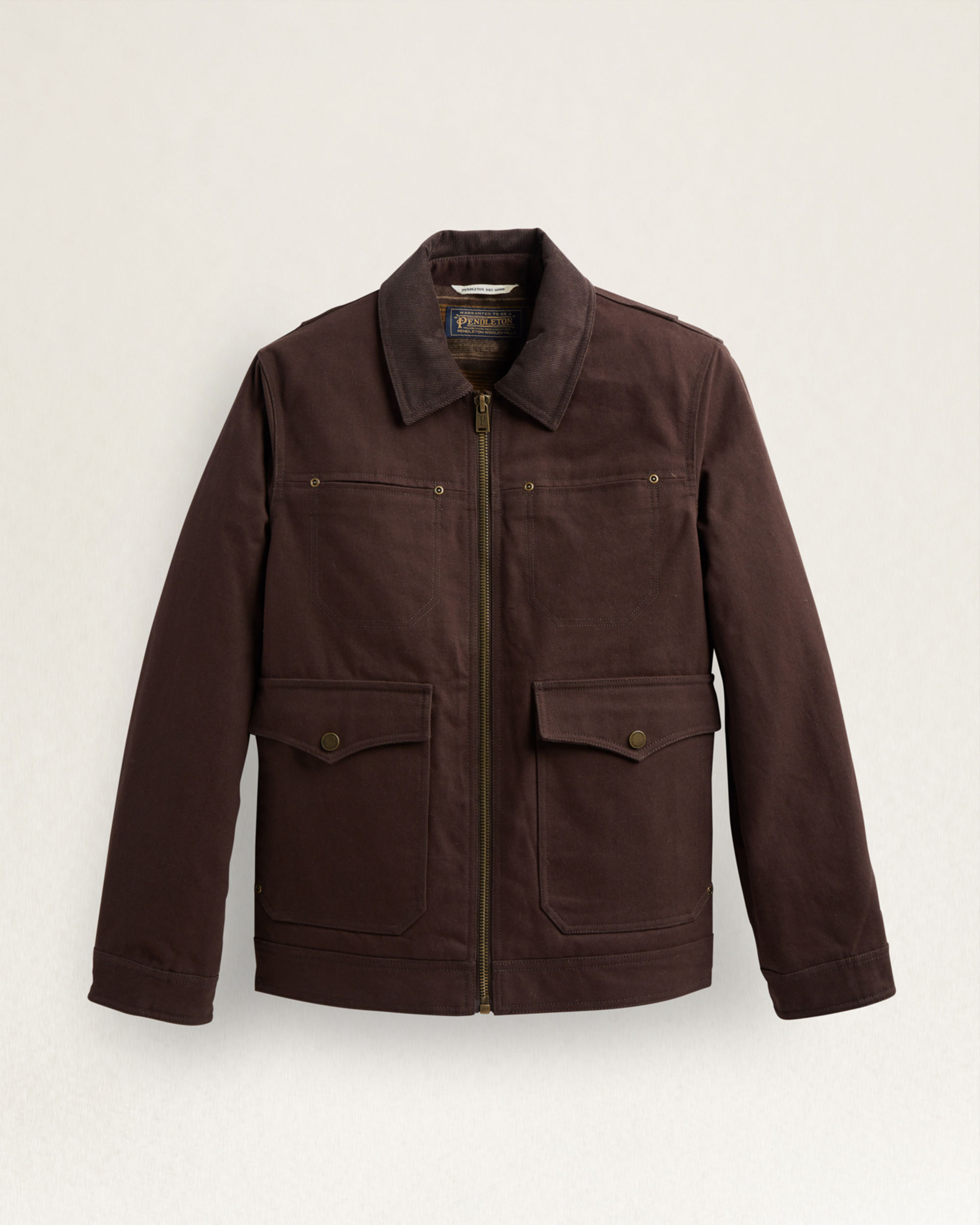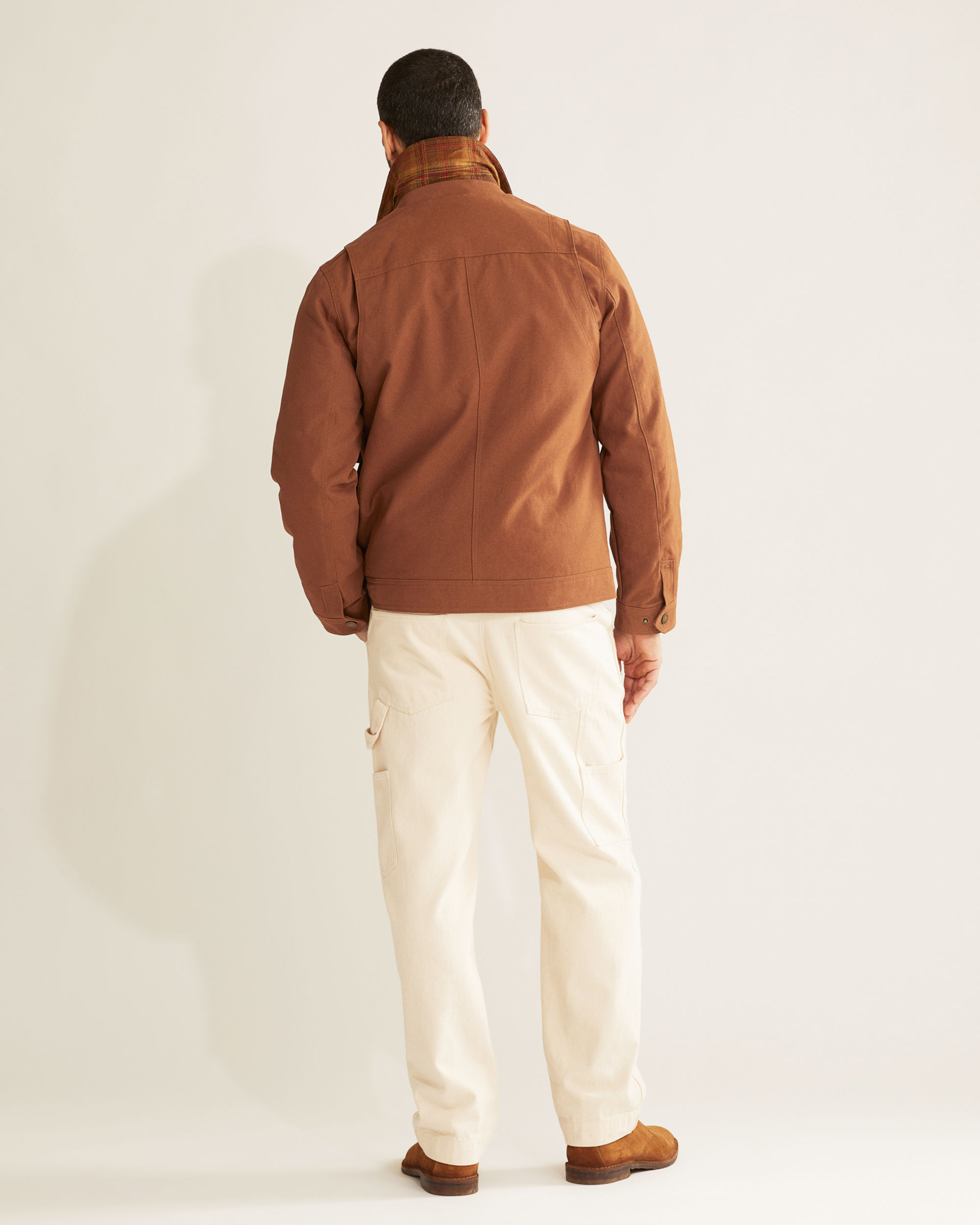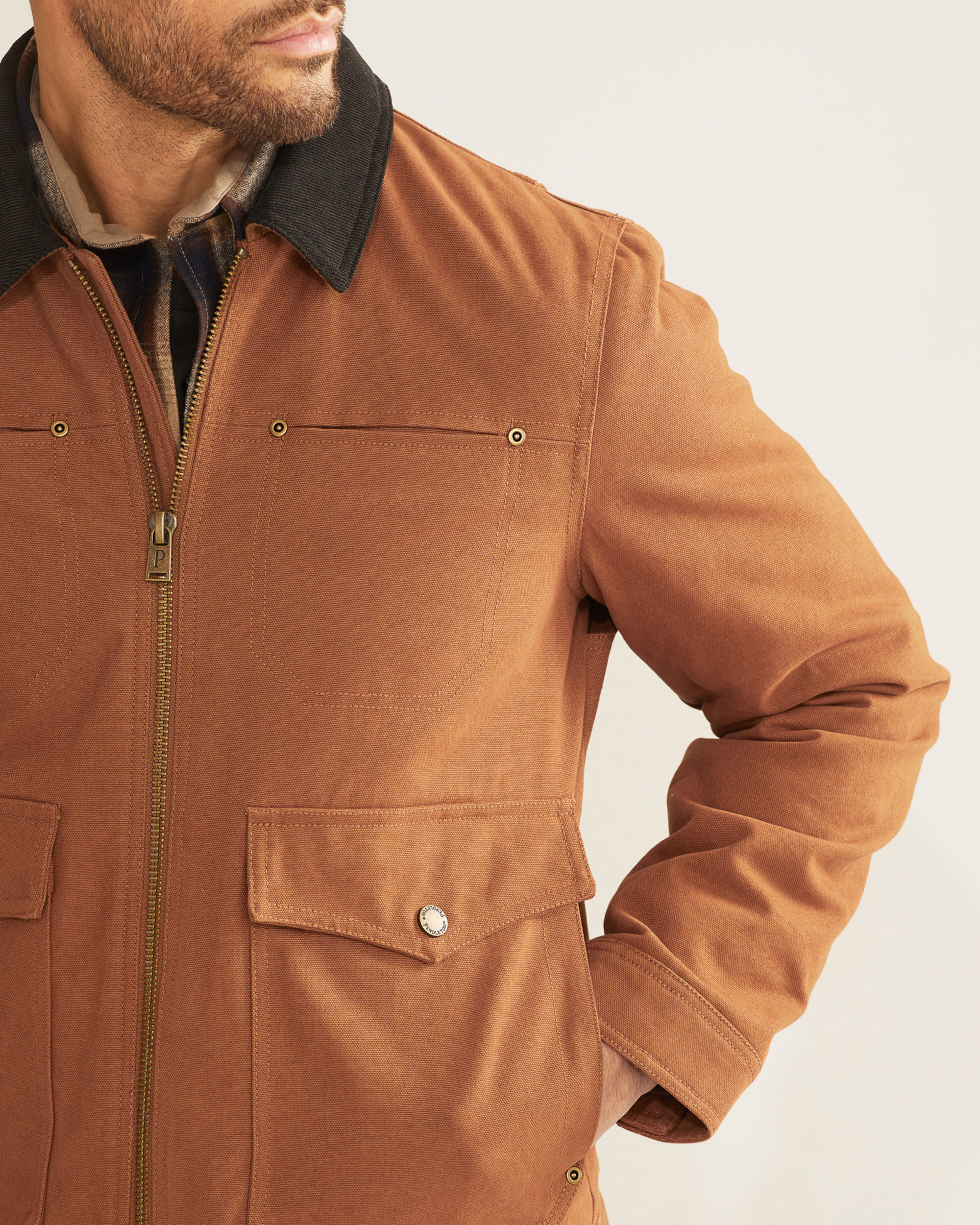 Meet your new favorite chore jacket. Made from 12-oz. Big Sky Canvas in a workwear-inspired design, it has a wool-blend plaid lining on the upper back and a corduroy collar. Multiple pockets add extra functionality. Lightly filled for warmth; polyester-lined sleeves.