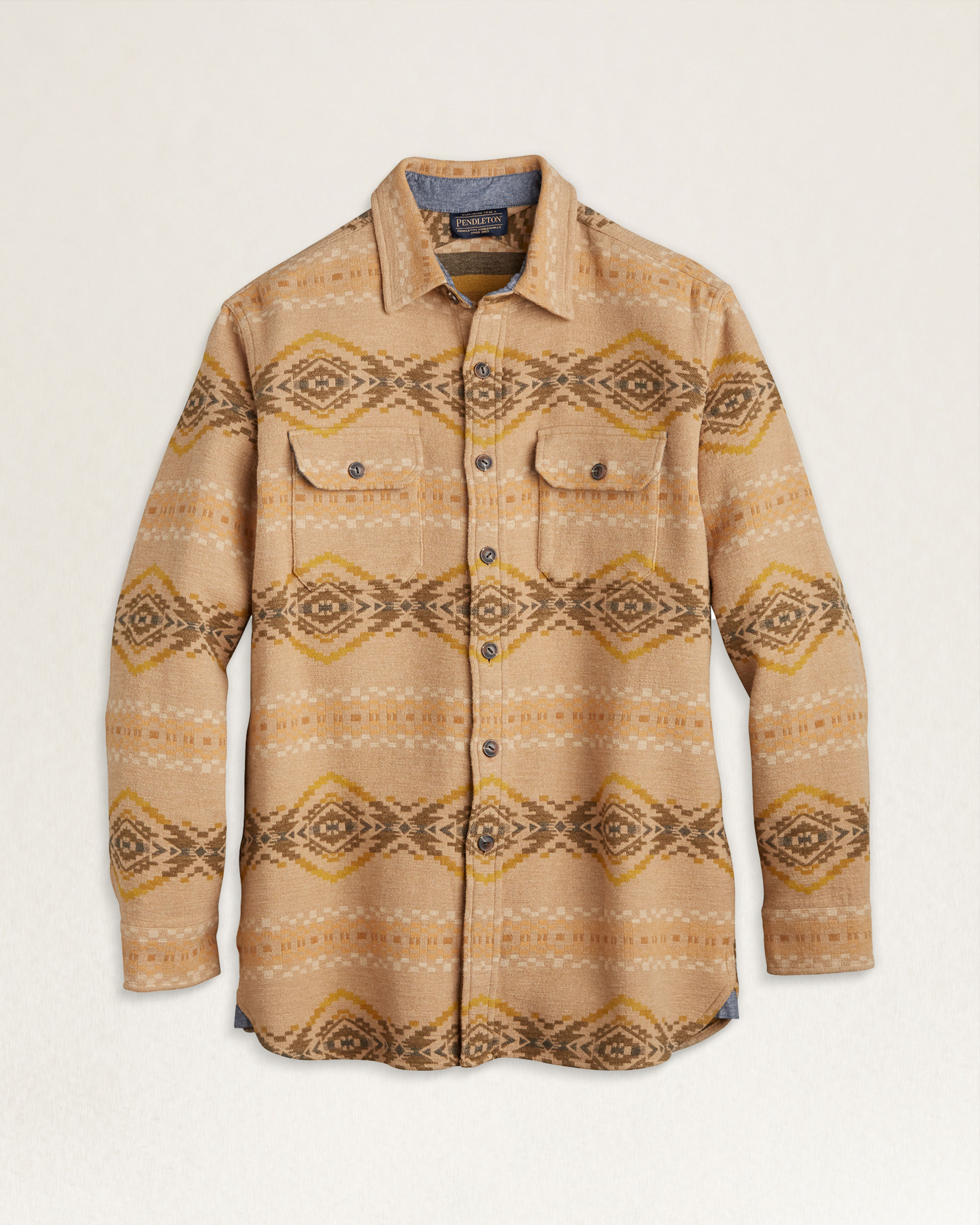 A button-front shirt crafted from pure cotton chamois, brushed on both sides for double the softness. Spread collar, two matched button-through chest pockets.