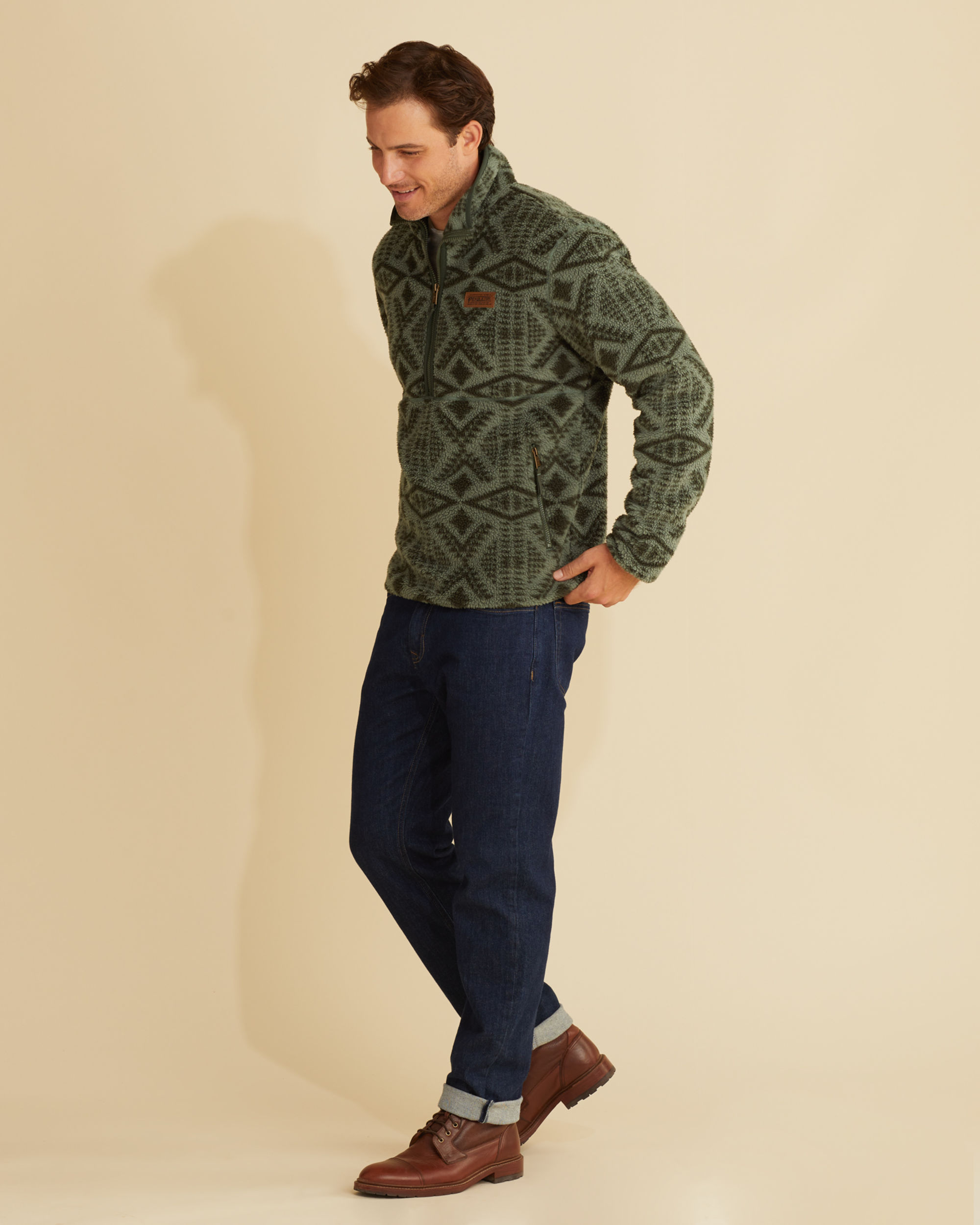 A cozy fleece half-zip pullover in our exclusive Diamond River pattern, with two zip-close pockets. Comfortably cut for easy layering.