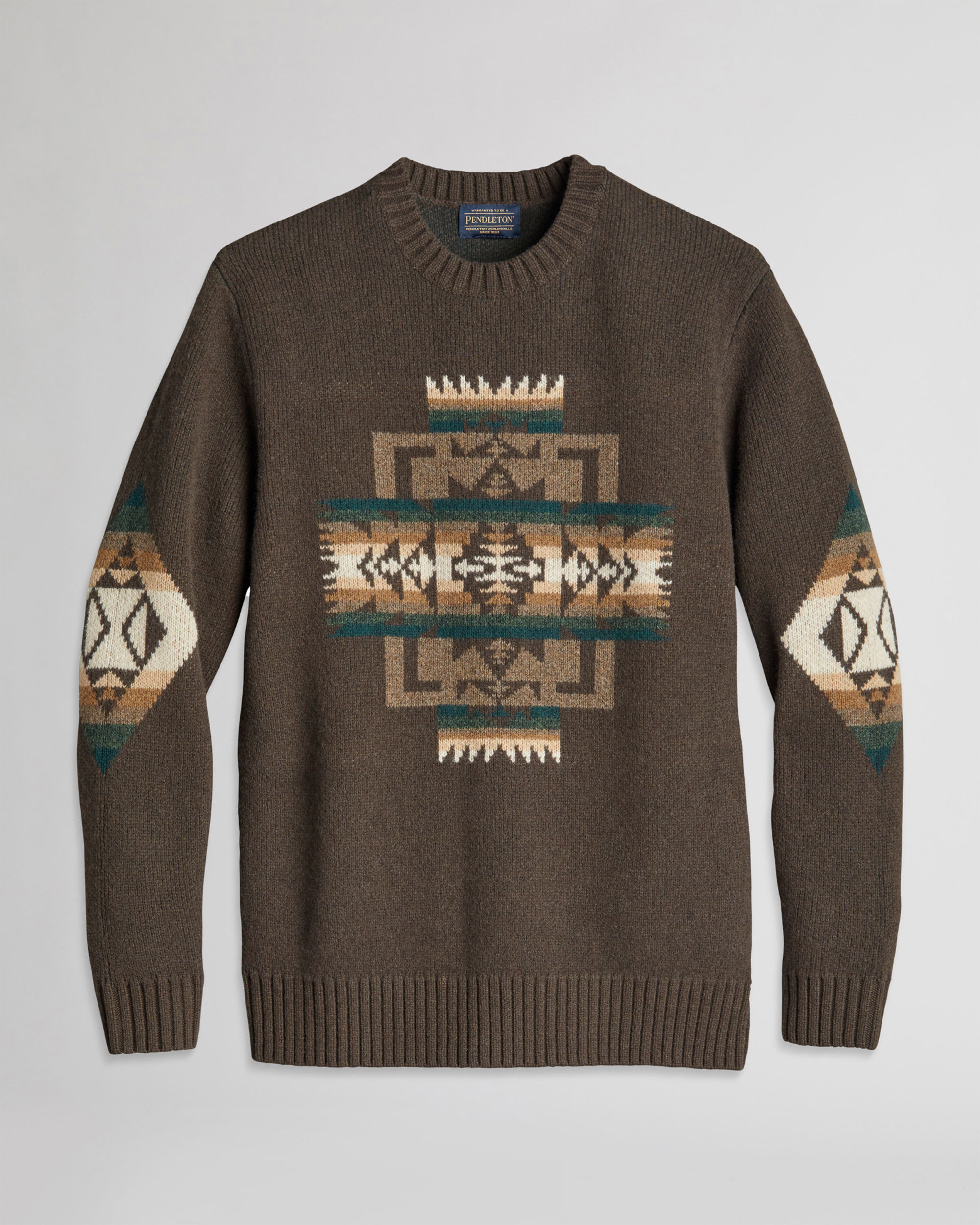 A classic crew sweater crafted from warm, durable lambswool. Features our bestselling Chief Joseph design on front and sleeves. Ribbed neck, cuffs and hem.