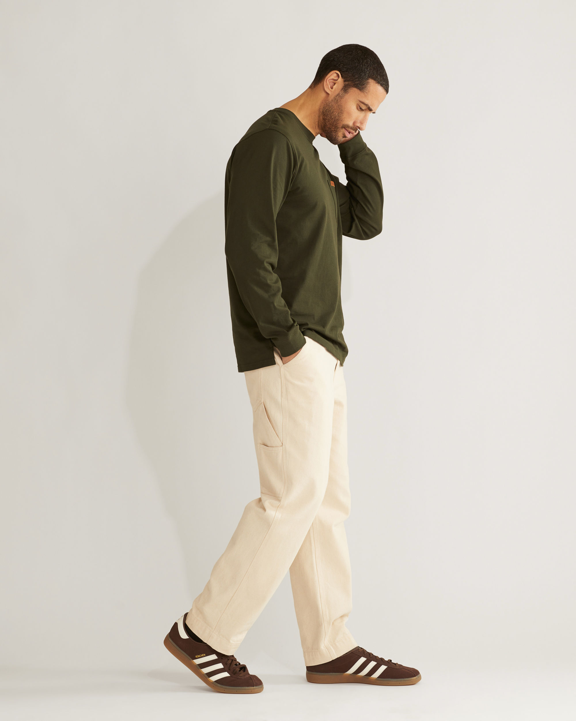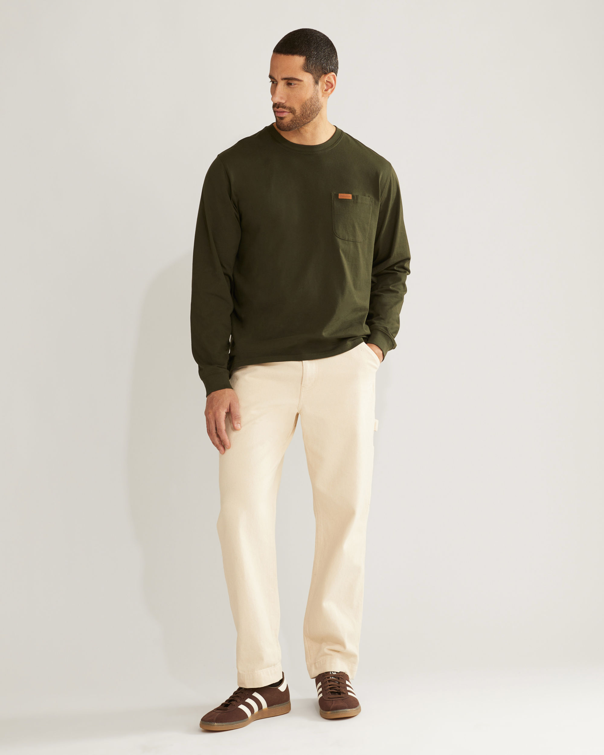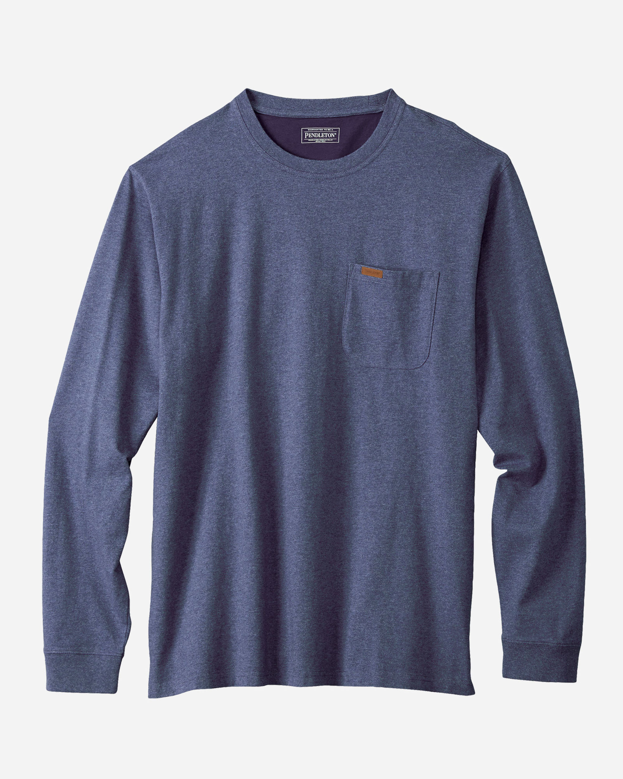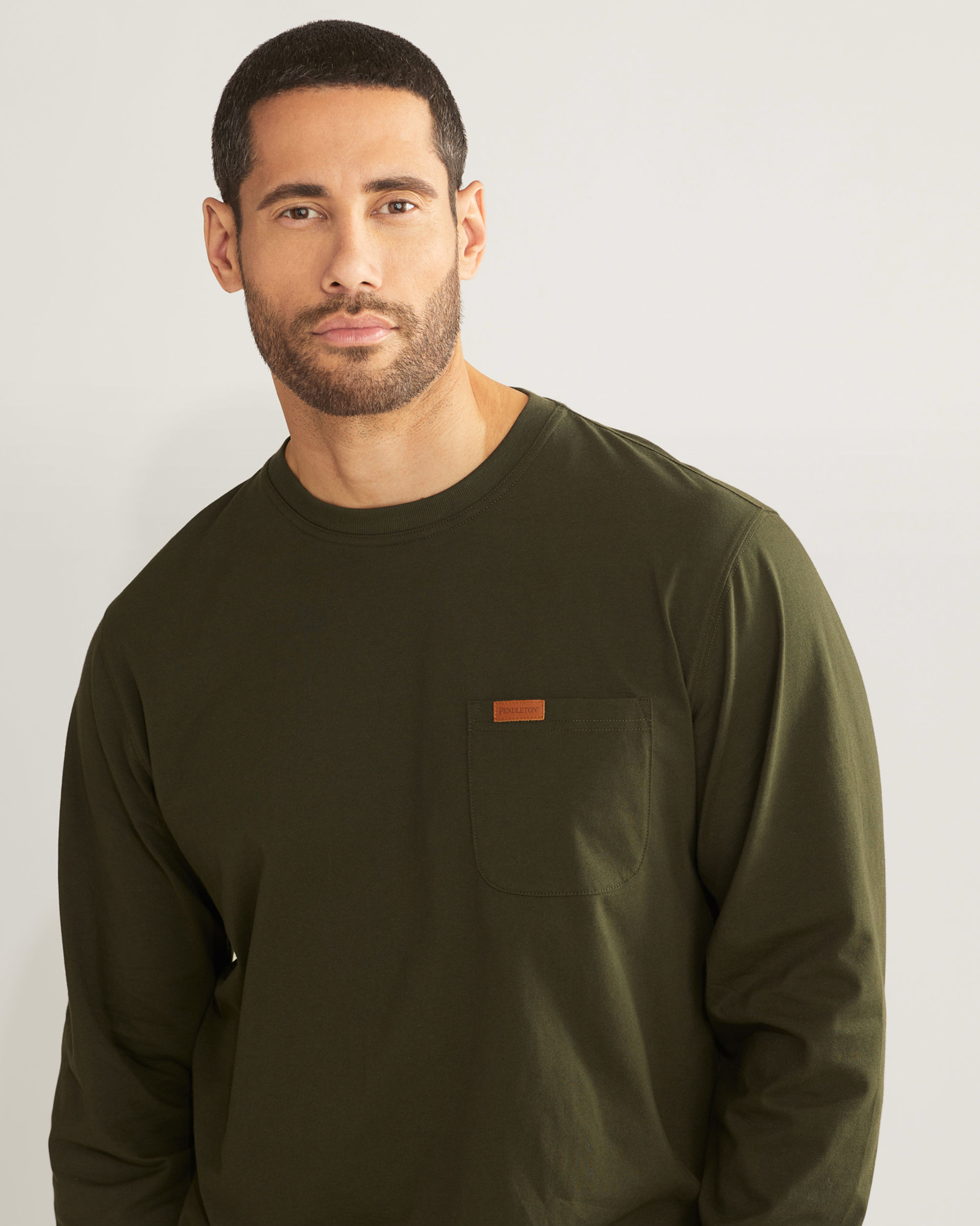 Our famous long-sleeve men's t-shirt of premium combed cotton in a hardy jersey knit. A reinforced pocket and double-needle stitching add staying power. Label-free neck.
