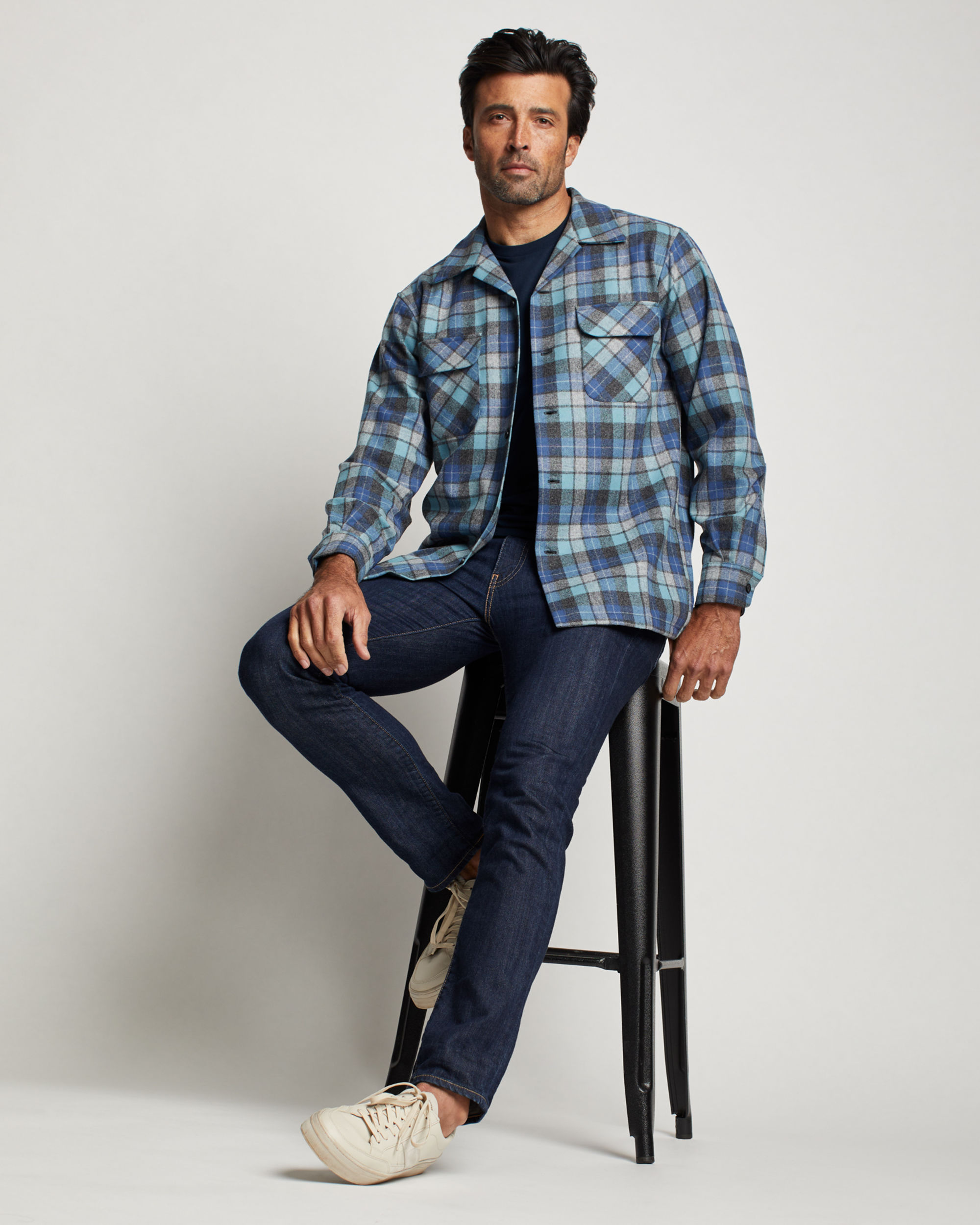 An essential among California surfers in the '60s, and still our bestselling shirt today. Made from premium, machine-washable wool sourced from local ranchers in Umatilla County, Oregon near our Pendleton mill. Rugged, midweight fabric is water, odor and stain-resistant. Square bottom, two bias-cut pockets. Tall fits men 6' and up.