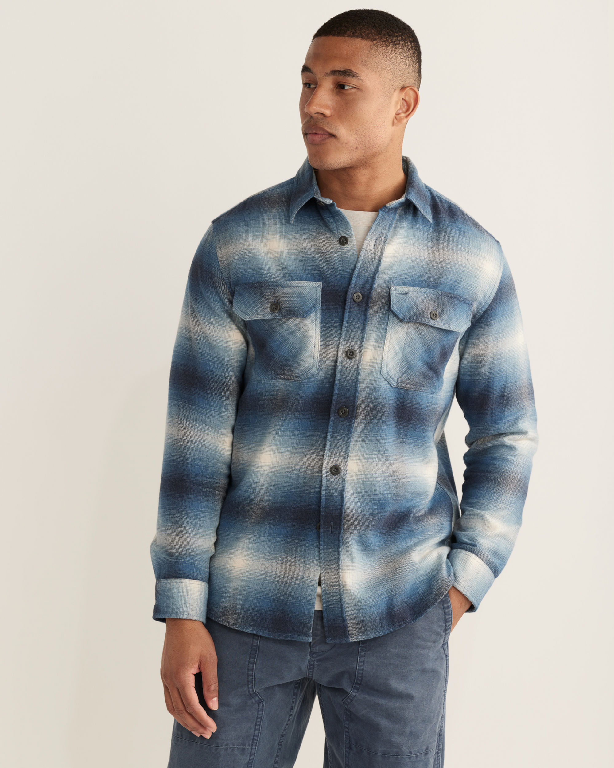 Named after Portland's hardworking, historic street, this men's plaid cotton shirt is a rugged, dependable flannel that's brushed on both sides for extra softness. Two button-through chest pockets with a pen slot, twill tape placket and locker loop.