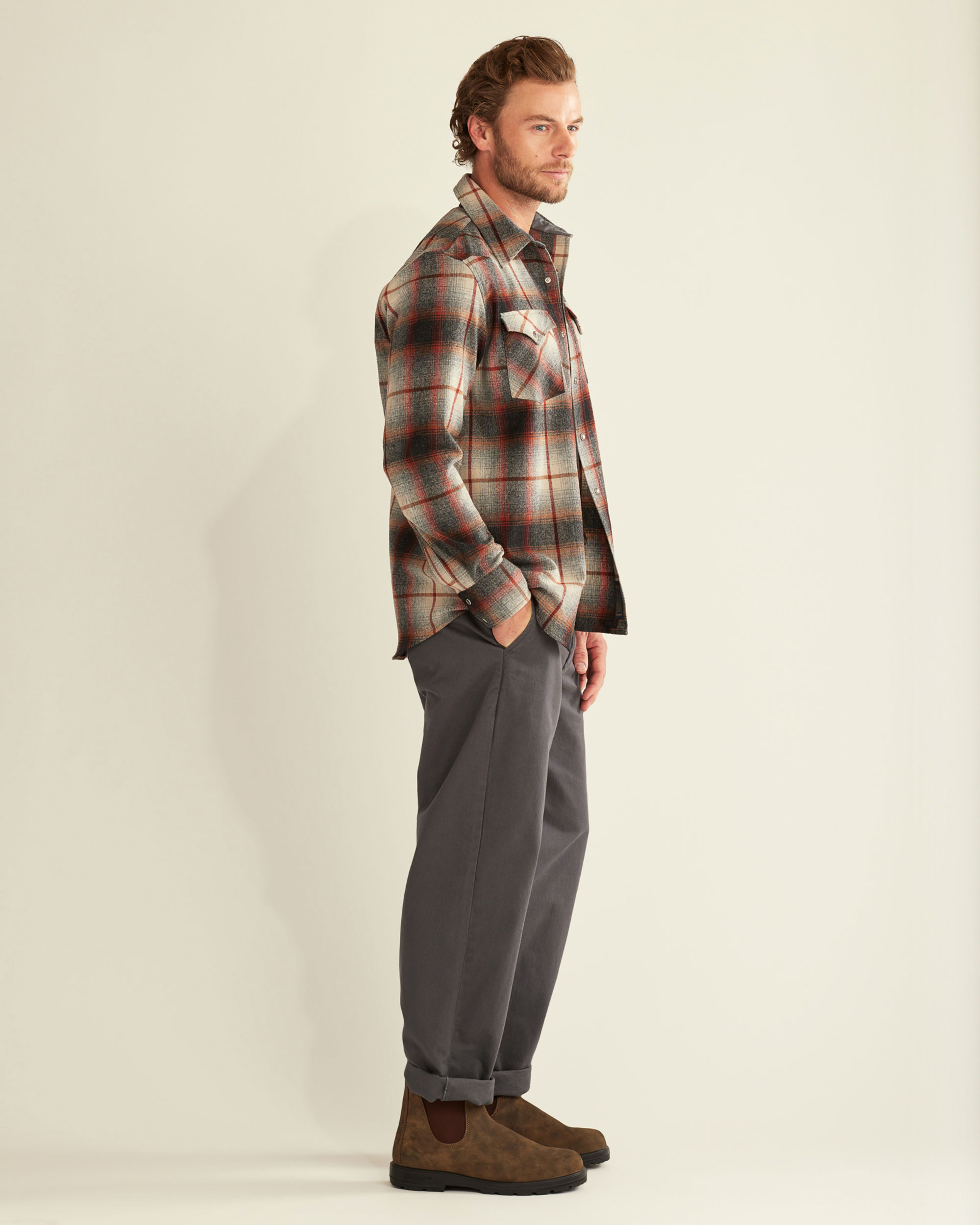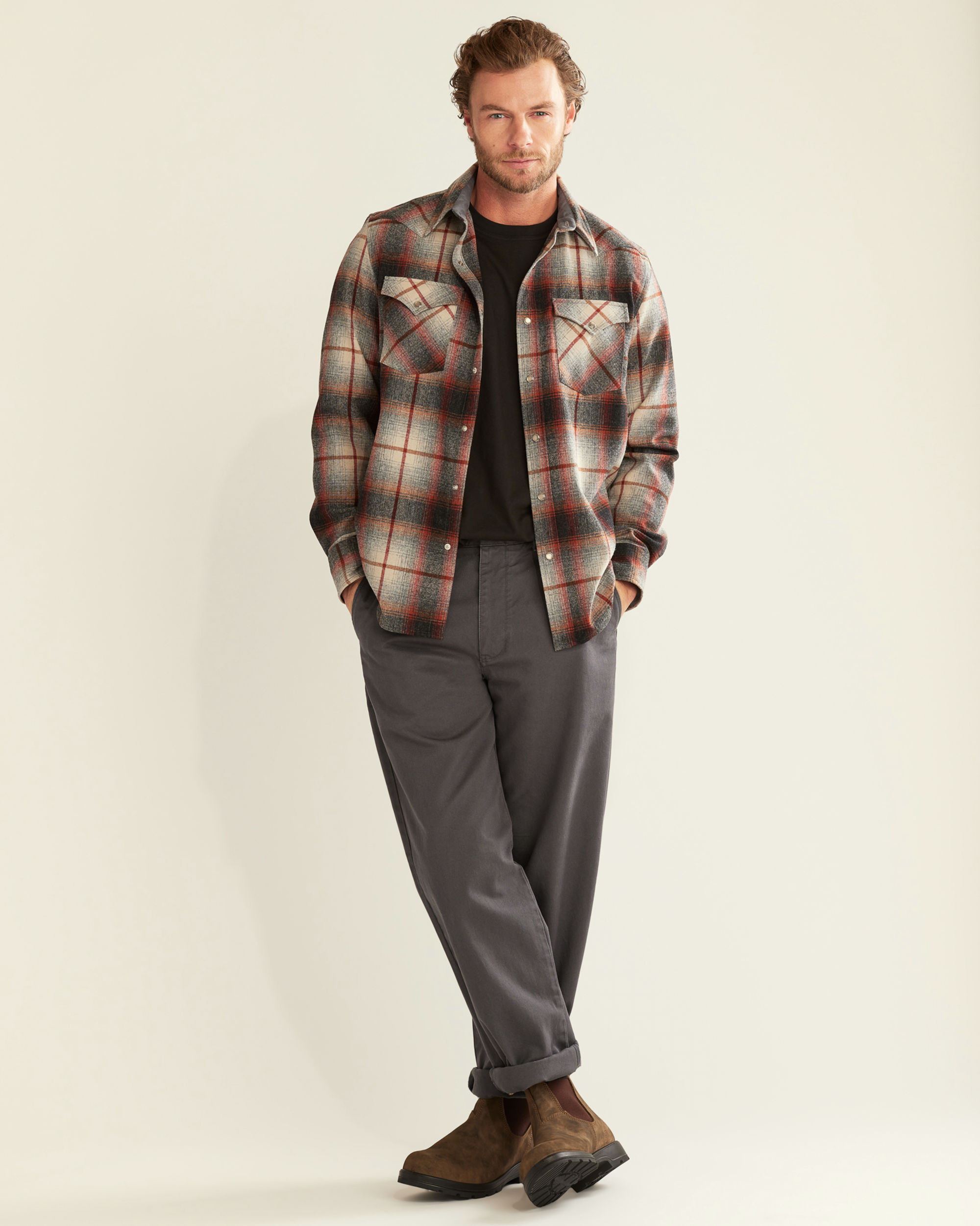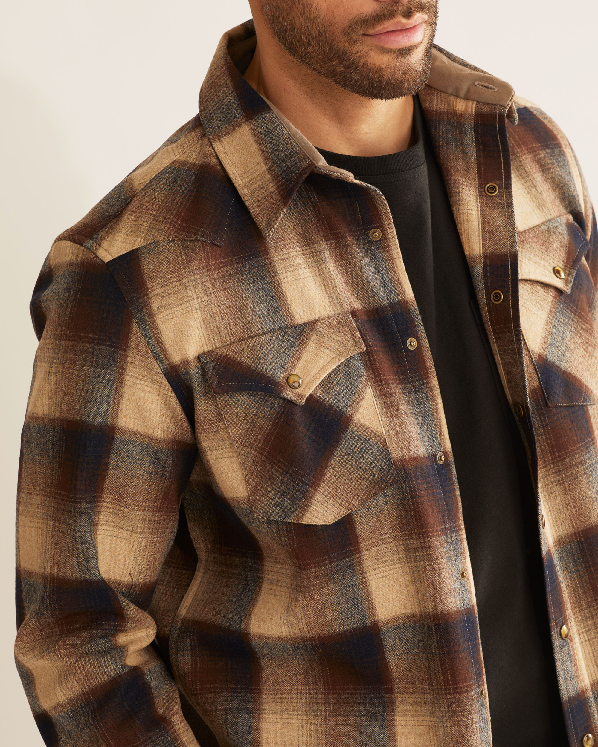 A Western-style men's shirt in our machine-washable Umatilla® wool, sourced from Oregon ranchers and woven in our American mills. Designed with classic details: pearlized snaps, peaked yokes and two flapped, button-through chest pockets. Tall fits men 6' and up.