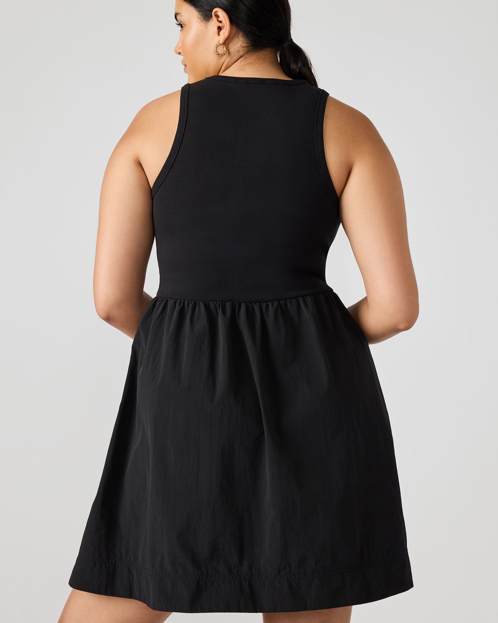 • Combo dress with rib knit top and nylon bottom