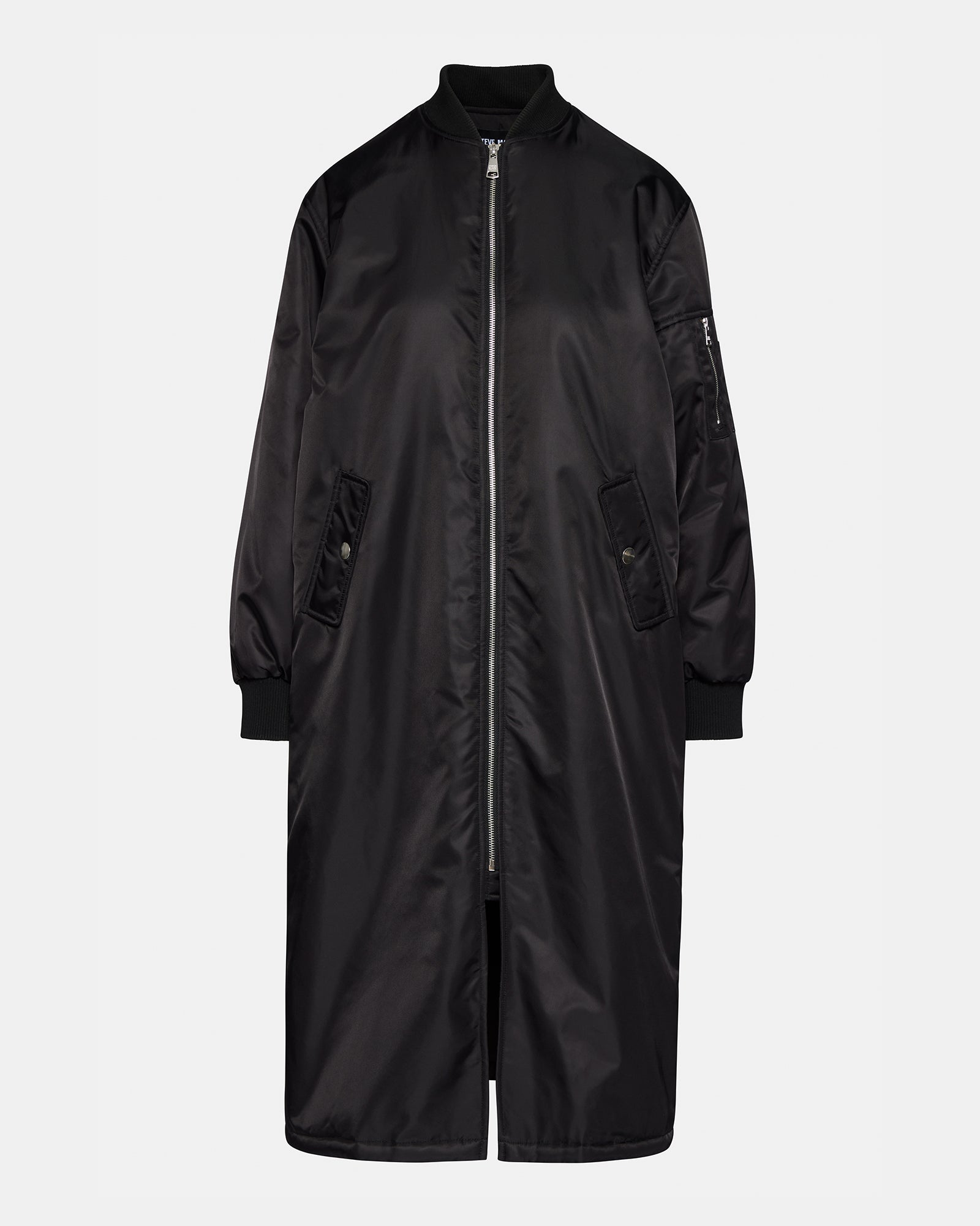 The VINDY is a long bomber coat with a variety of features to keep you warm and stylish. The knit rib at the neck and cuffs add a touch of comfort, while the zipper closure and front flap pocket with snap closure provide both functionality and security. The full lining adds an extra layer of insulation, and the elastic waist in the back creates a flattering silhouette.